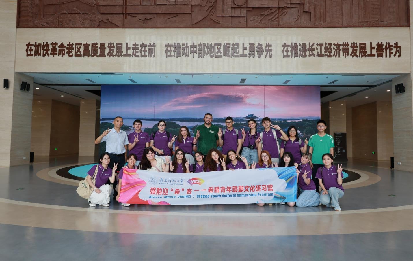 近日,由我校组织参与,赣南师范大学承办的青年使者交流学习计划(YES项目)暨“赣韵迎‘希’客”——希腊青年赣鄱文化研习营暨圆满落下帷幕。18名我校希腊师生以“文化、体验、友谊”为主线,在赣鄱大地完成了一场跨越山海的文明对话。